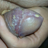 On tak wygląda tylko przez tą opuchlizne i maść mi sie wydaje. Skóra się naciąga i wygląda jak glut.